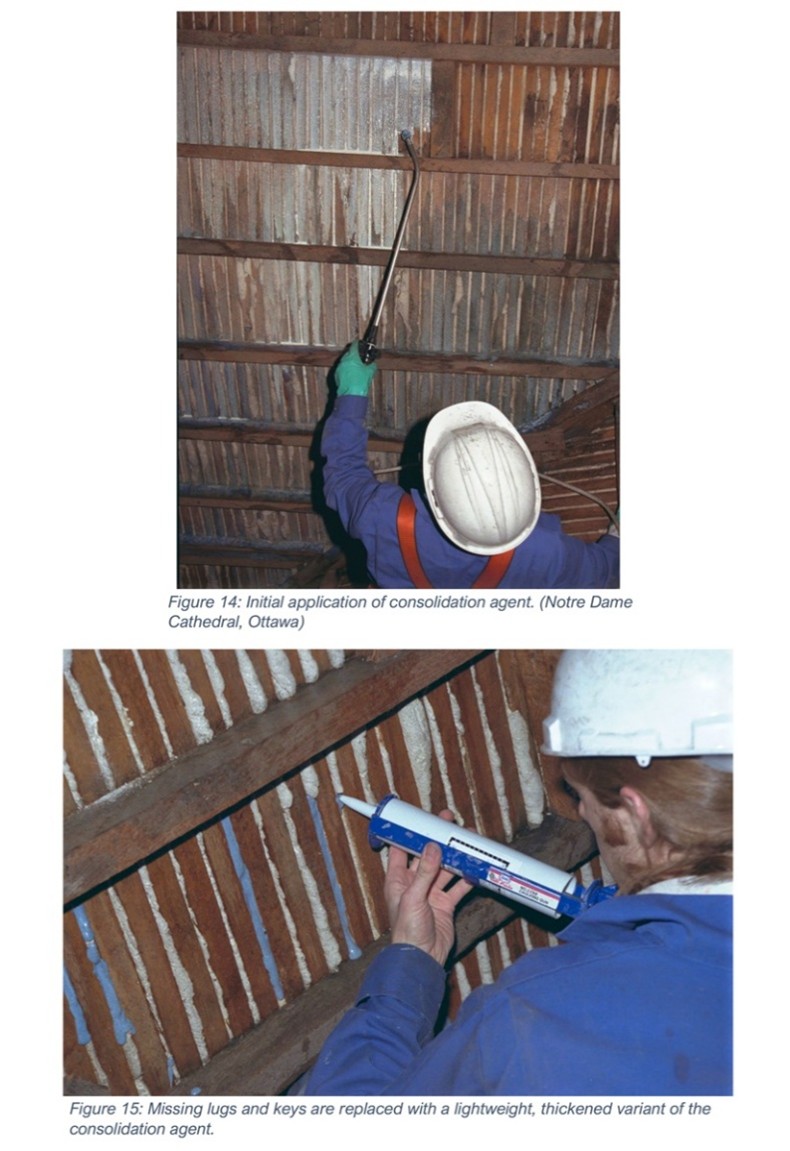 The work is to be carried out in the attic. The existing ceiling insulation must be removed, scaffolding must be erected to push the ceiling back to its original location, and then the keys must be glued and repaired. The work should take about six weeks and must be carried out in the spring or fall because of the temperatures in the attic. Insulation must be reinstalled and walkways must be improved.